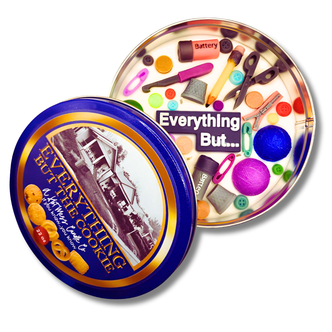 Are you ready for a trip down memory lane? Introducing Everything but the Cookie, the candle that smells exactly like those Danish sugar cookies. This candle doesn’t just smell amazing—it’s a hilarious nod to Grandma’s iconic blue tin, complete with wax scissors, buttons, safety pins, and more. And yes, it fills the room with the sweet, buttery scent of freshly baked Danish cookies!